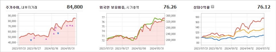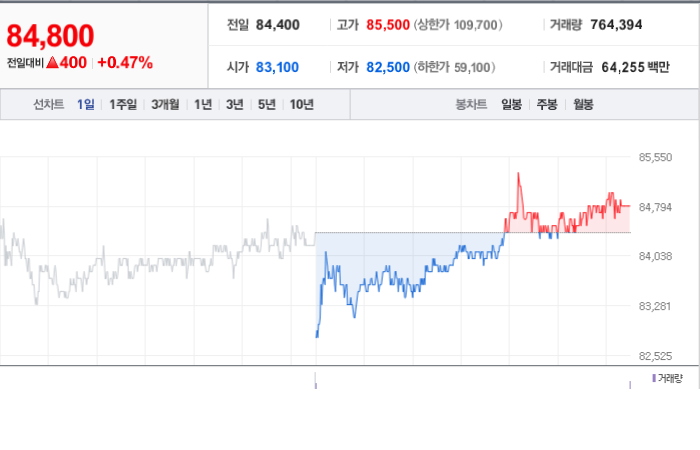 KB금융의 현재 주가는 84,800원이며 전일 대비 보합을 보이고 있습니다. BlackRock Fund Advisors(외 13인)은 KB금융의 주주 중 8.26%의 지분을 소유하고 있습니다. KB금융은 상업 은행 기업으로, 장중 주가는 84,800원입니다. 시가 총액은 34조 2177억 원이며 발행 주식수는 403,511,072주입니다. 외국인 보유 비중은 76.26%이며 장중 거래량은 850,800주입니다. 매출액은 31,515억 원을 기록했습니다.
