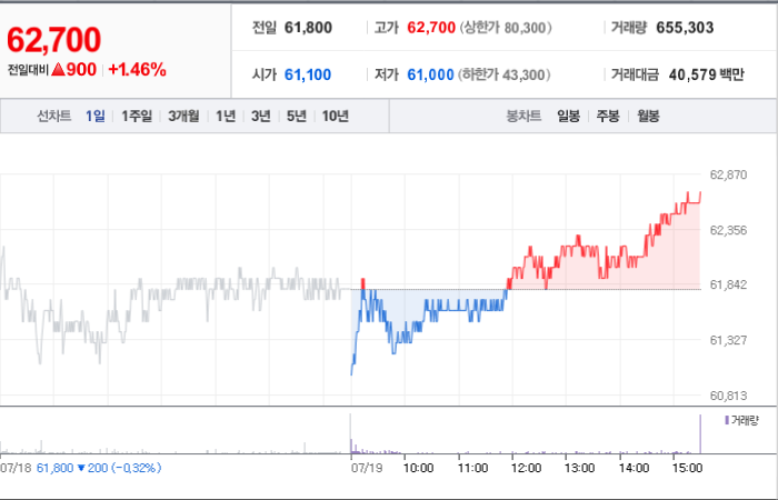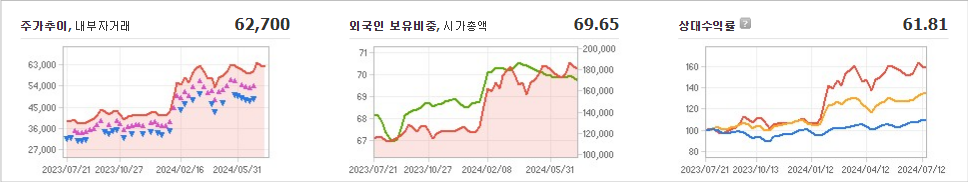 하나금융지주의 현재 주가는 62,700원이며 전일 대비 원의 모습을 보이고 있습니다. 주주현황을 살펴보면 BlackRock Fund Advisors(외 12인)이 지분 8.51%를 소유하고 있습니다. 상업은행 기업인 하나금융지주의 시가 총액은 18조3308억 원이며 발행 주식수는 292,356,598주 입니다. 외국인 보유 비중은 69.65%이며 장중 거래량은 655,969를 기록했습니다. 또한, 매출액은 22,206억 원을 달성했습니다.